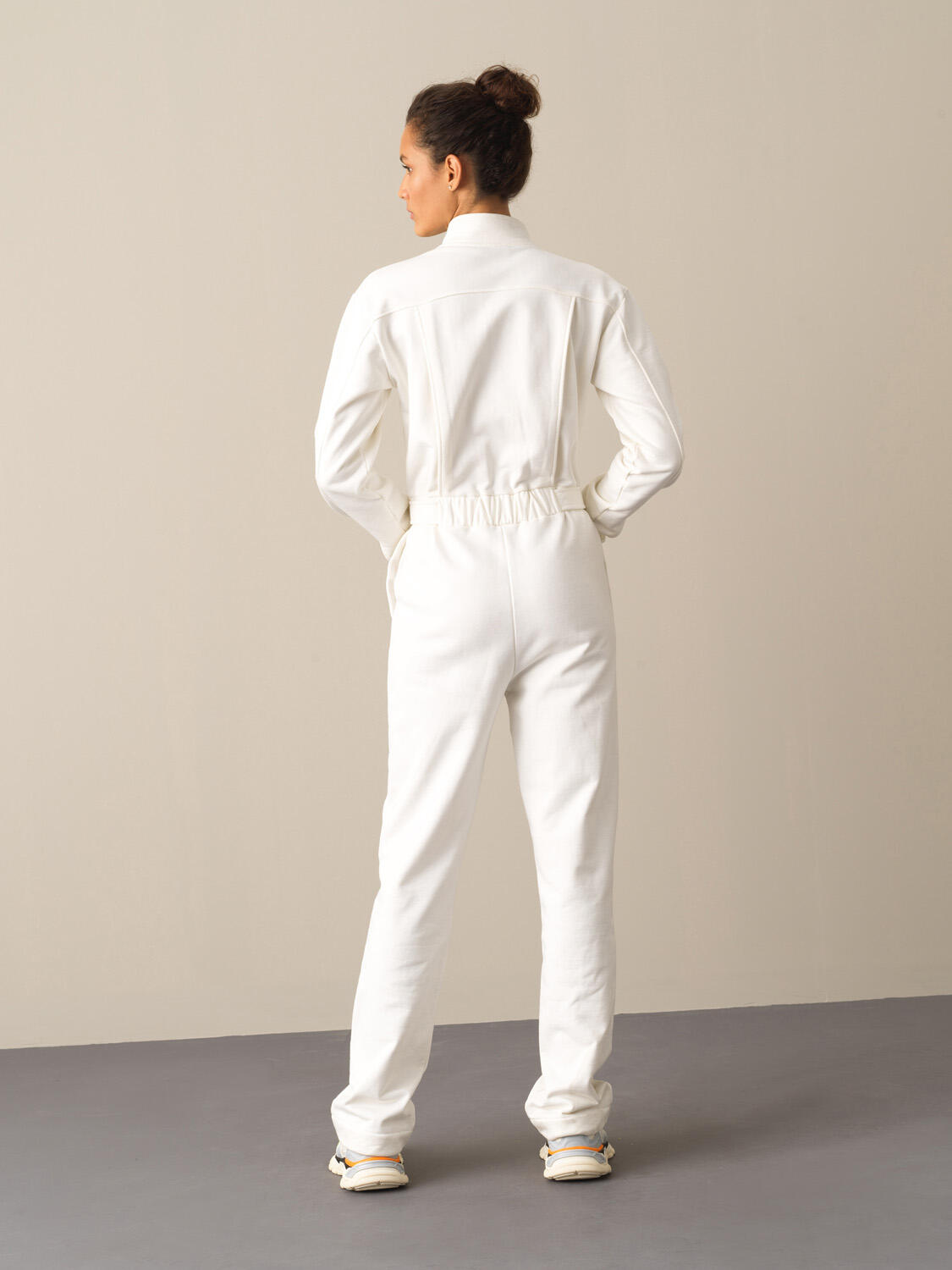 Ecru Modal Textured Regular Fit Jumpsuit - Xint