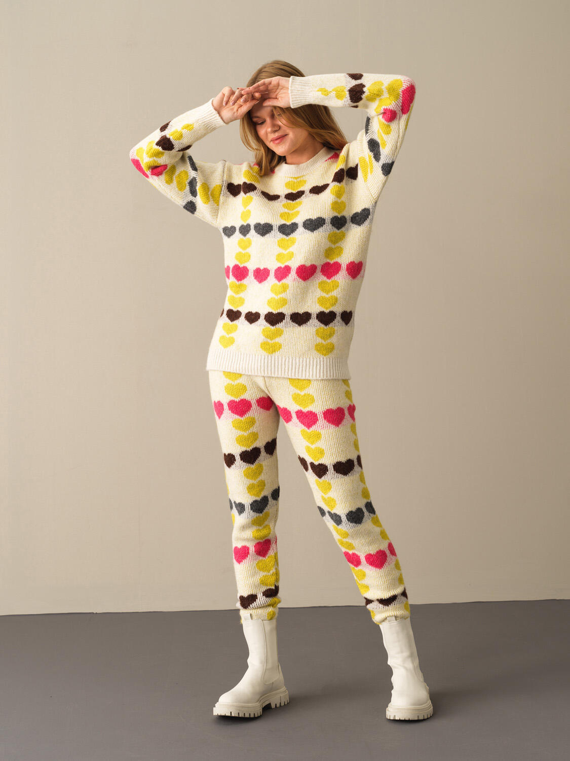 Ecru Natural Wool Textured Regular Fit Sweater - Xint