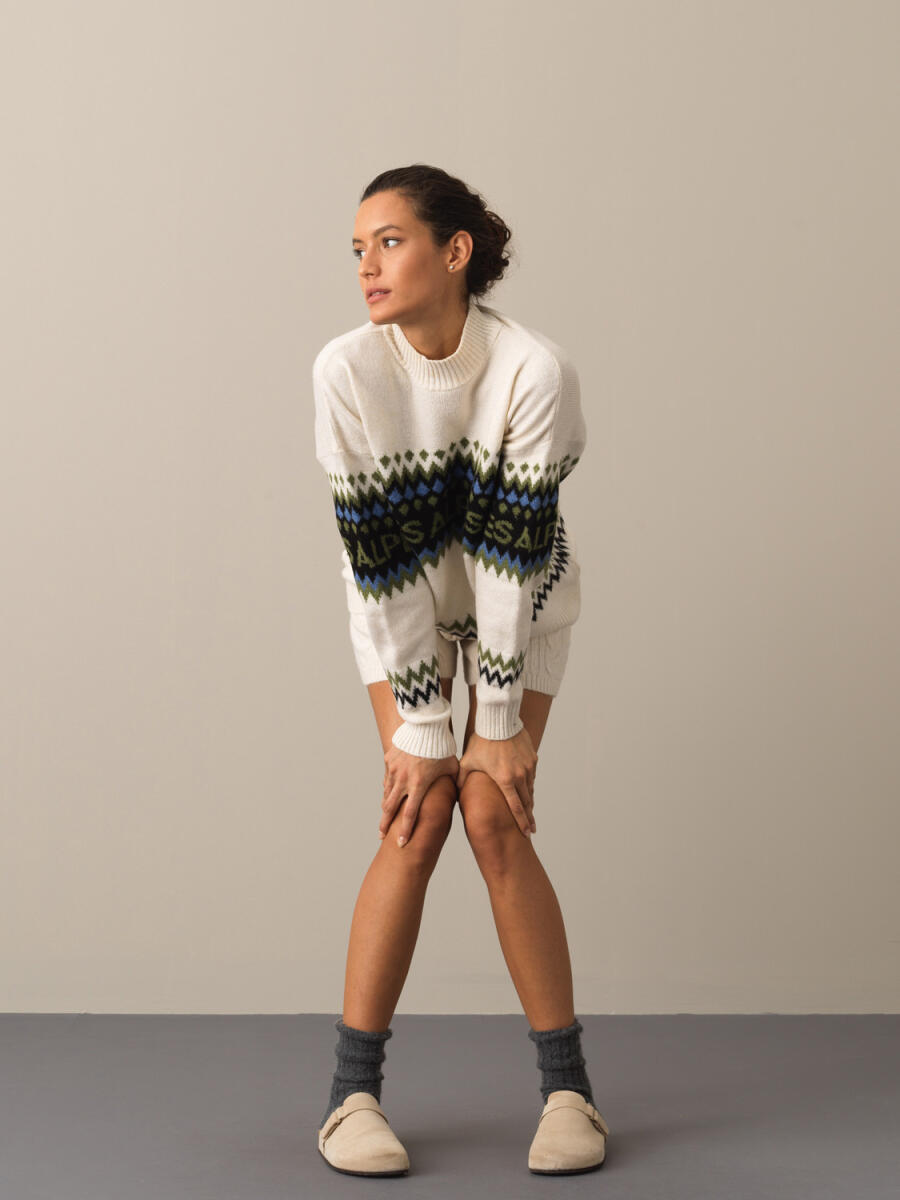 Ecru Natural Wool Textured Regular Fit Sweater - Xint