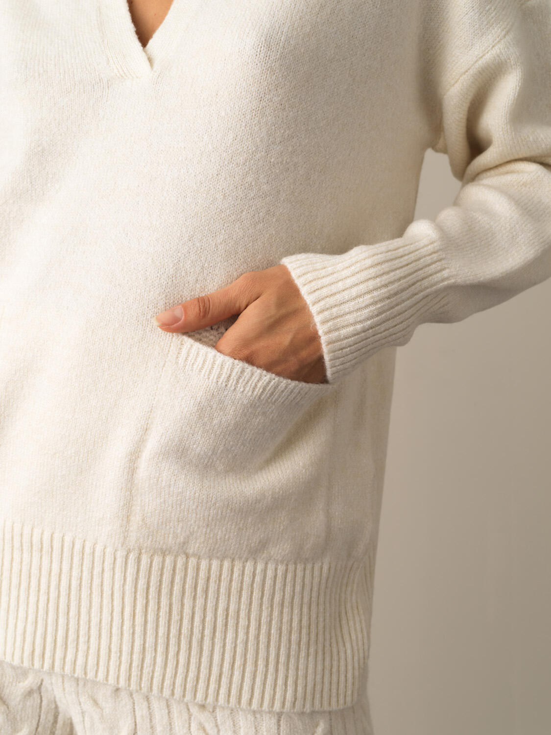 Ecru Natural Wool Textured Regular Fit Sweater - Xint