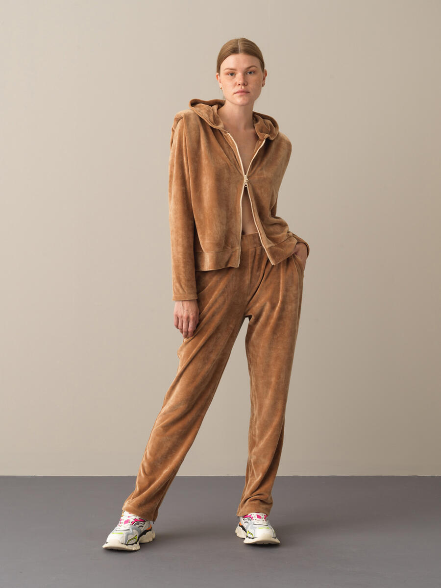Regular Fit Shoulder-Padded Velvet Sweat Jacket