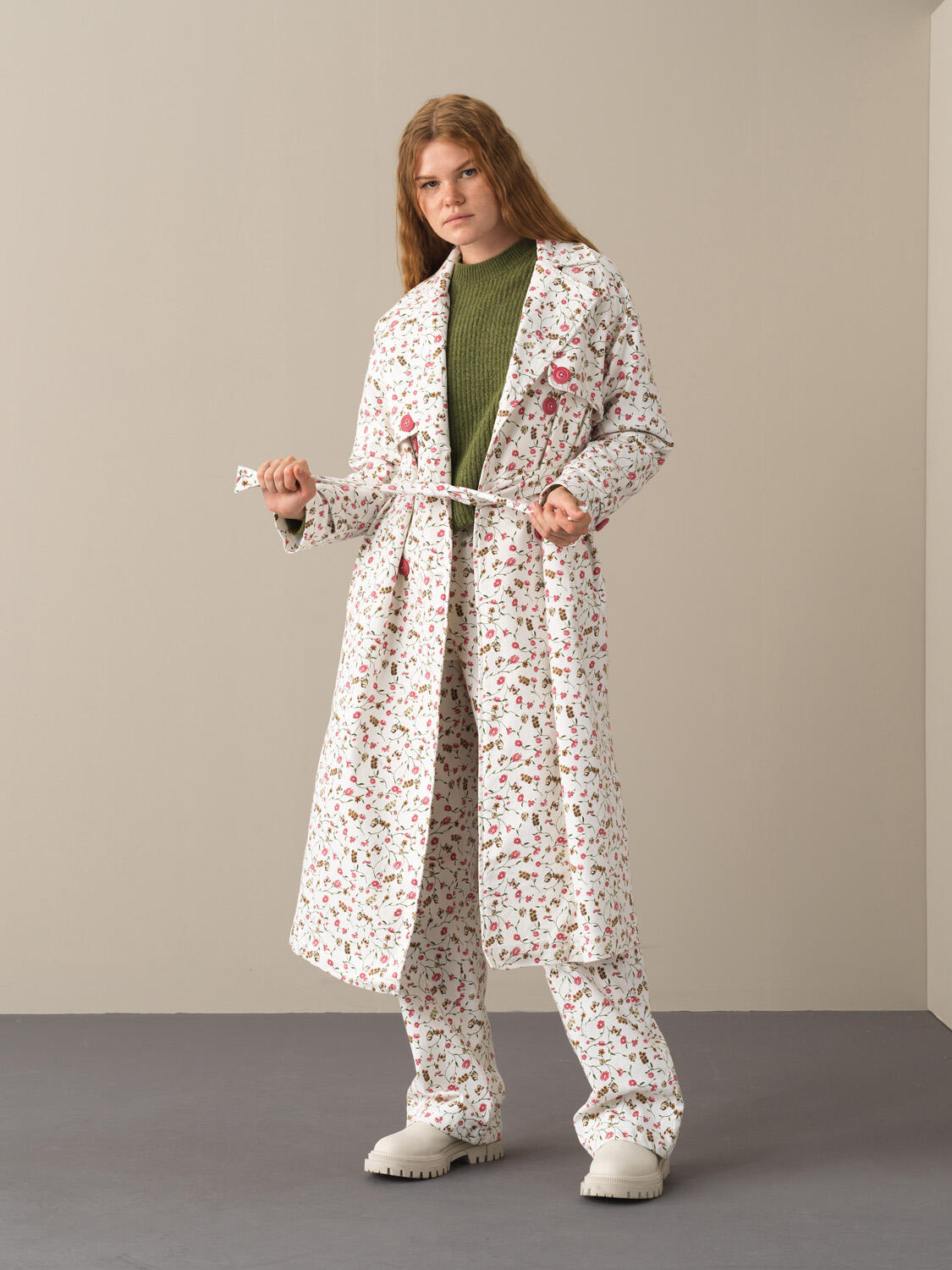 Ecru Modal Textured Oversize Trench Coat - Xint