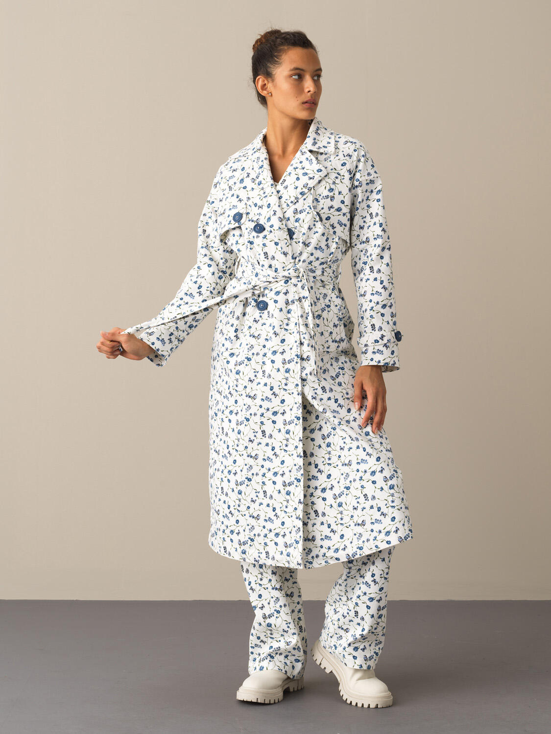 Waist-Tied Regular Fit Patterned Trench Coat - Xint