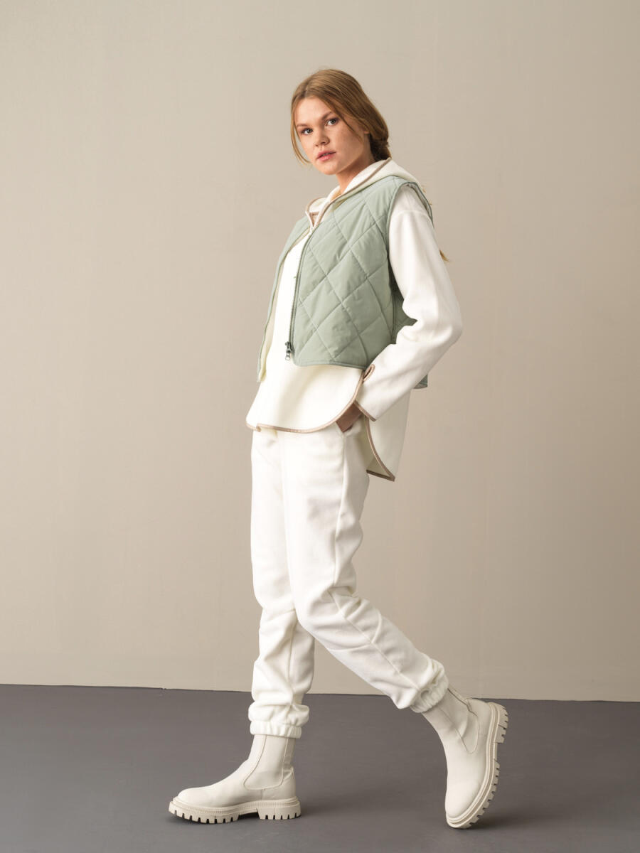 Ecru Glittery Lurex Detailed Oversize Vest - Xint