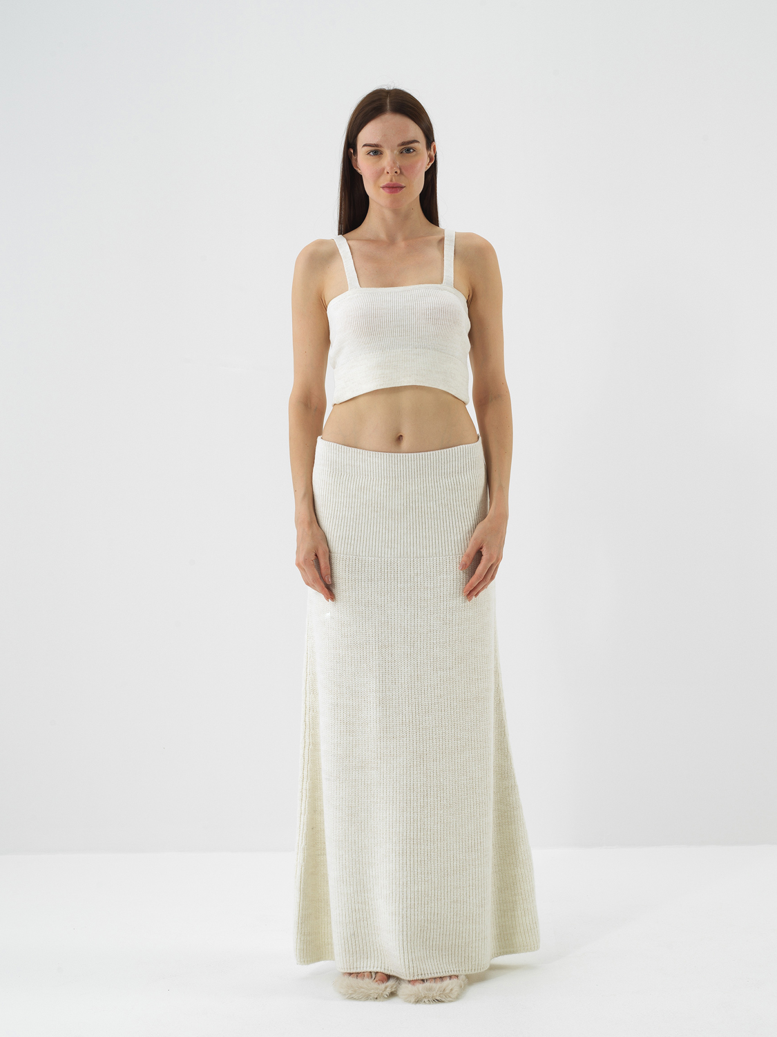 Ecru Natural Wool Textured Oversize Skirt - Xint