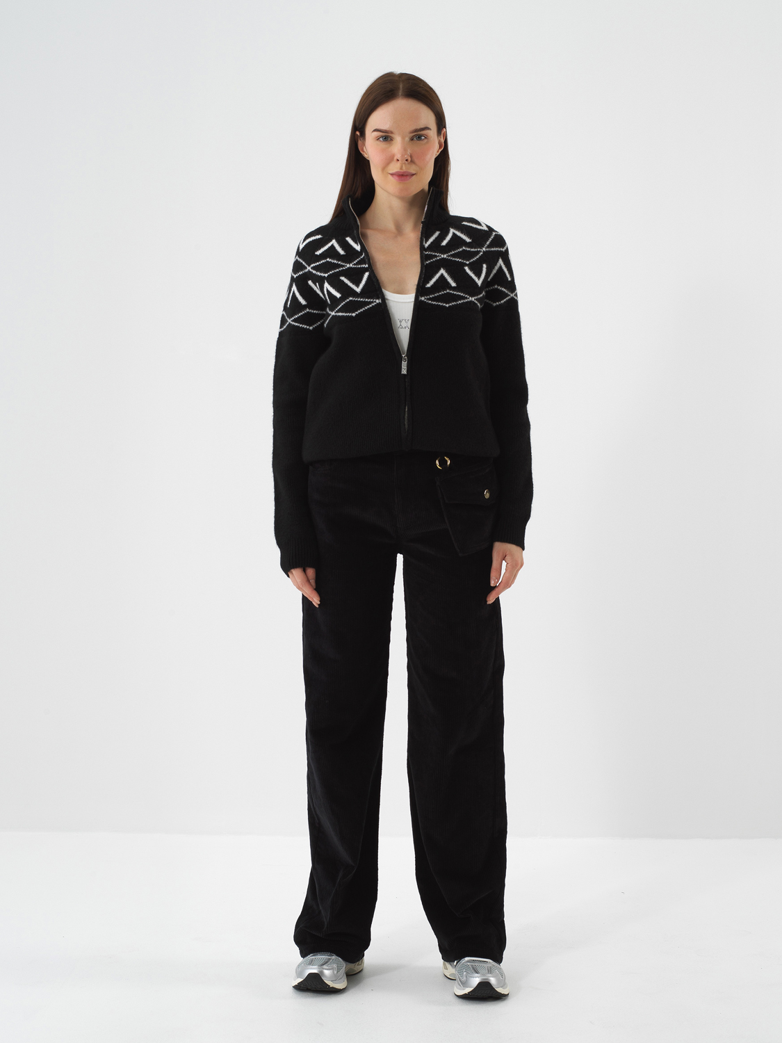 Black Luxurious Textured Soft Velvet Oversize Trousers - Xint