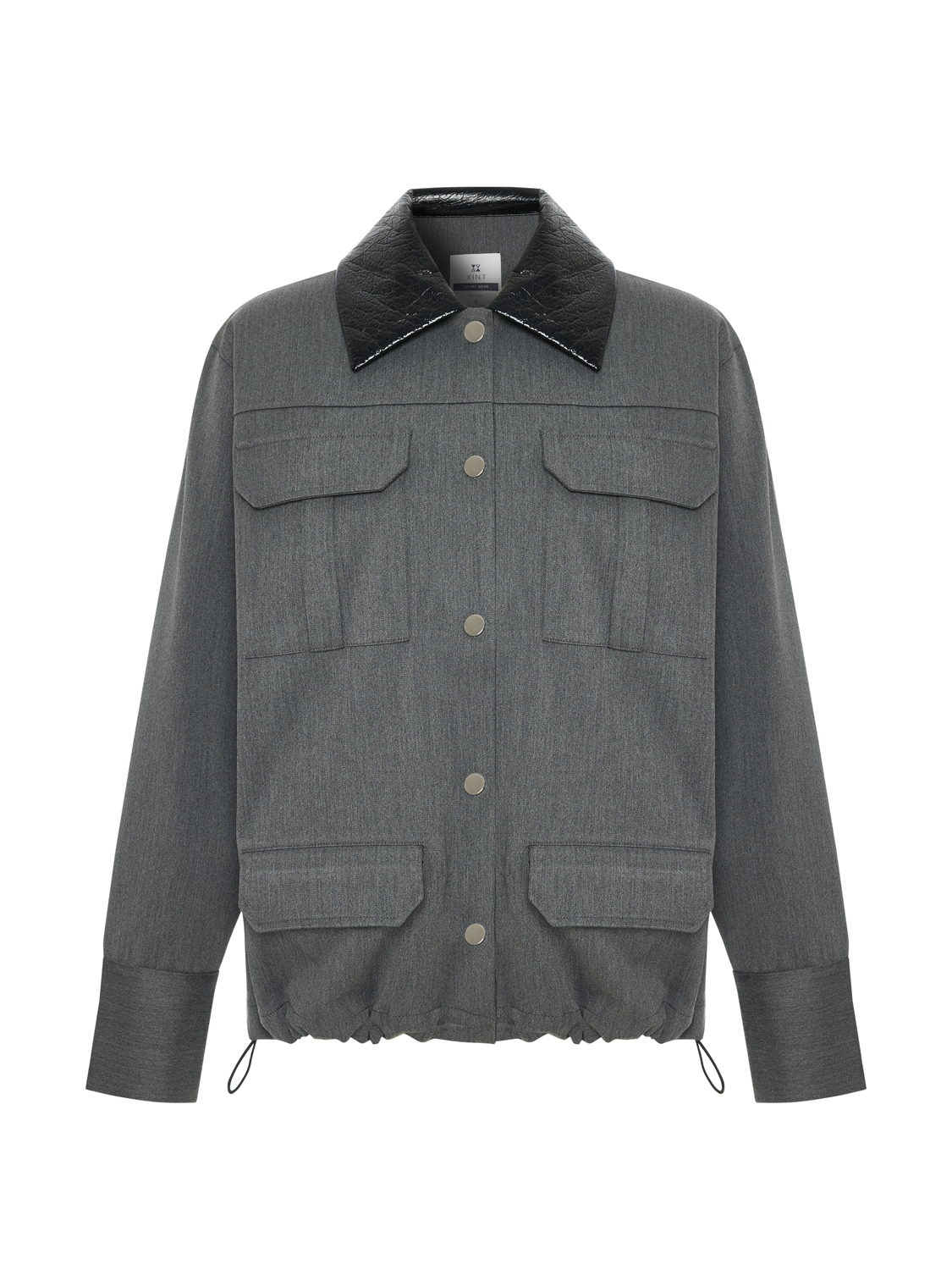 Navy Blue Flexible Textured Oversize Jacket - Xint