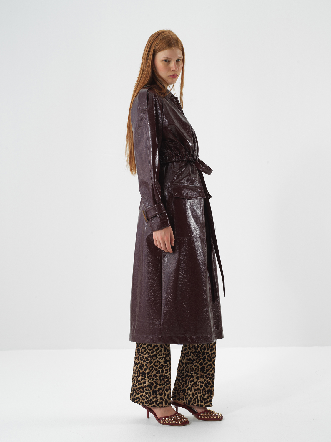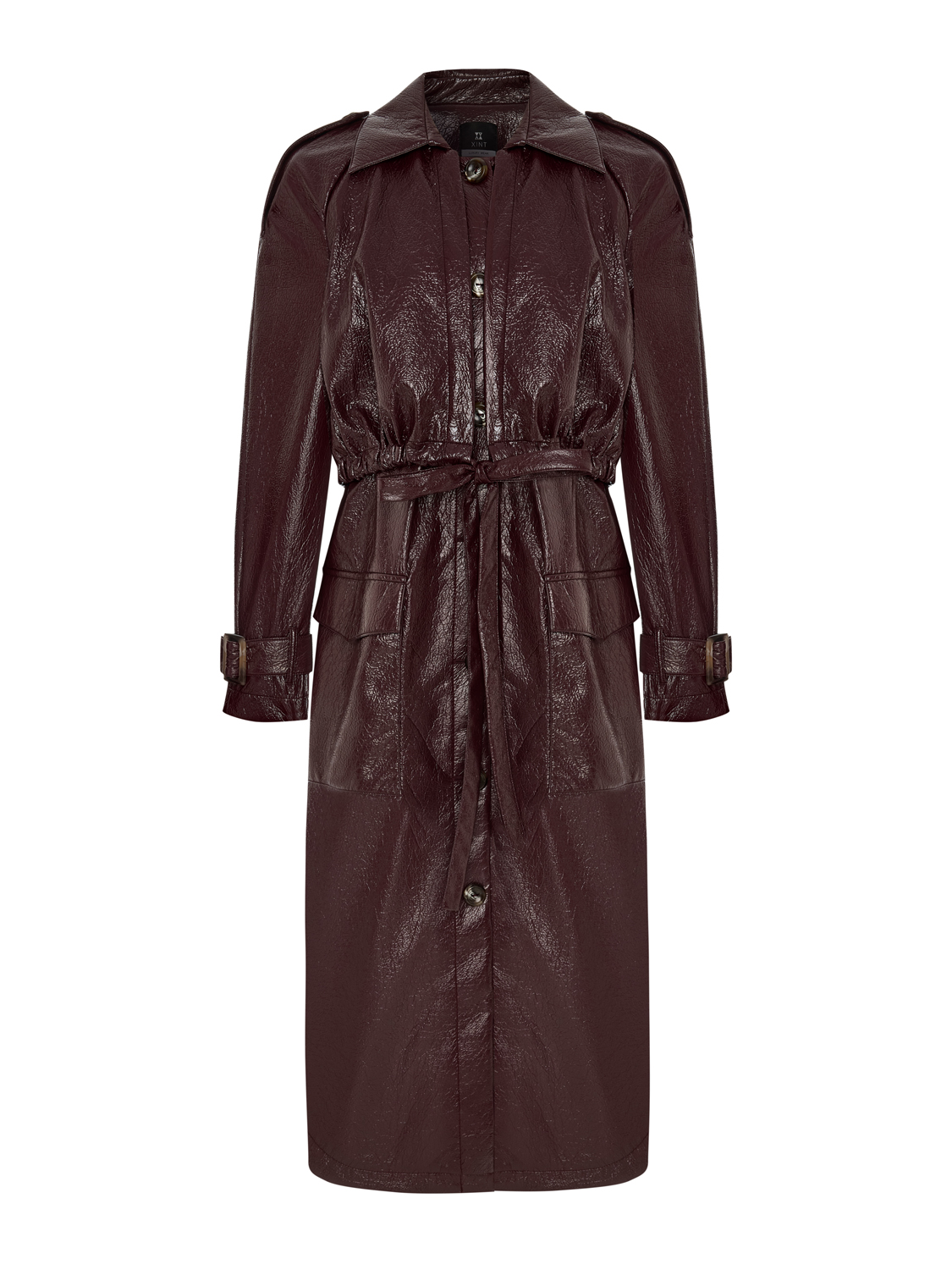 Burgundy Leather Look Regular Fit Raincoat - Xint