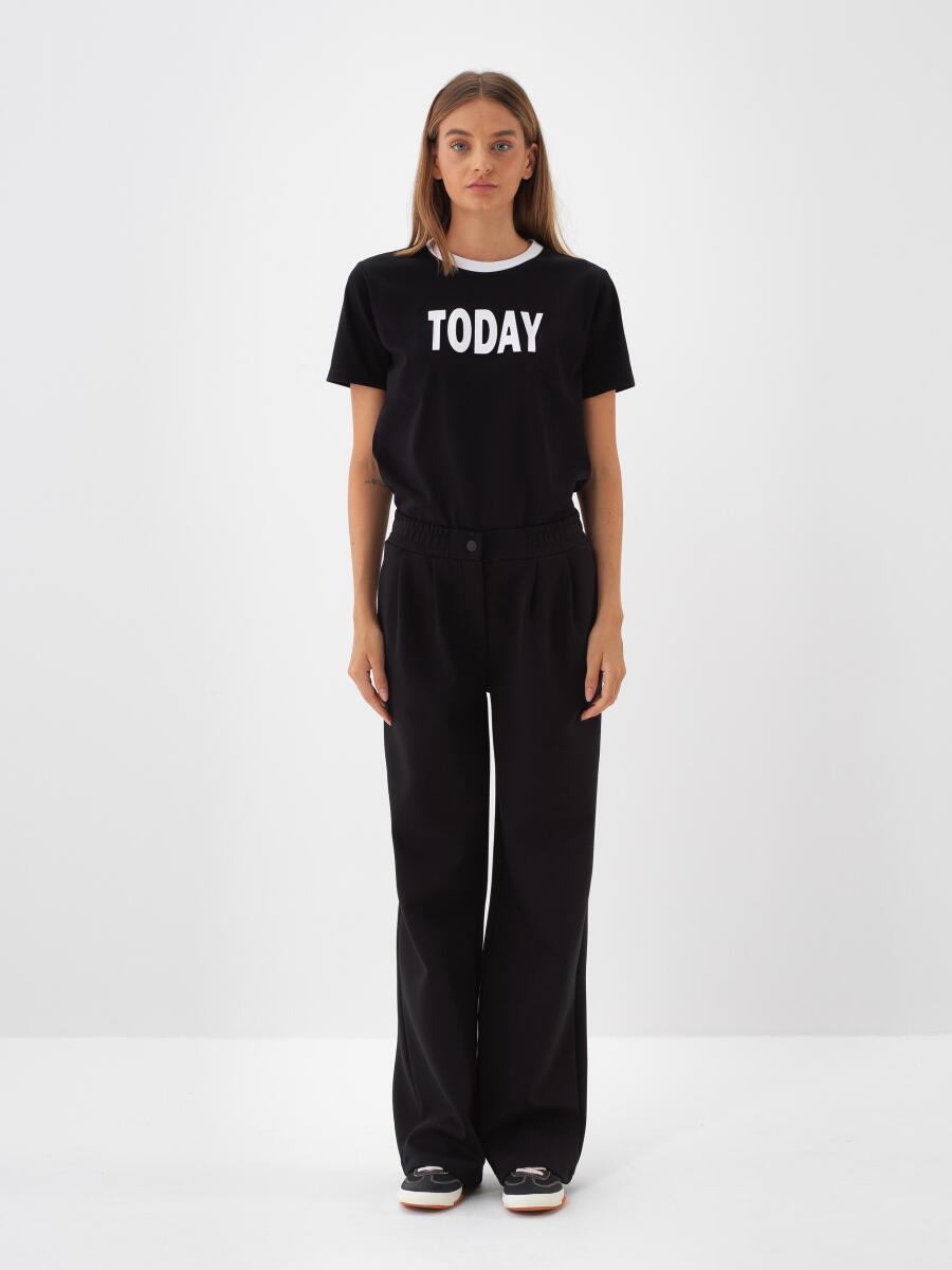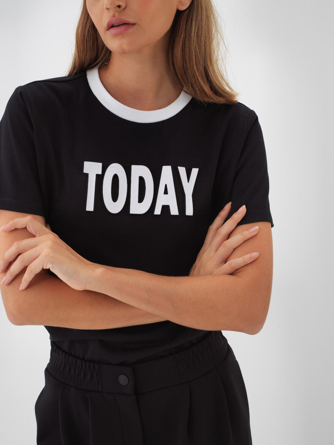 Black Modal Textured Regular Fit T-Shirt - Xint