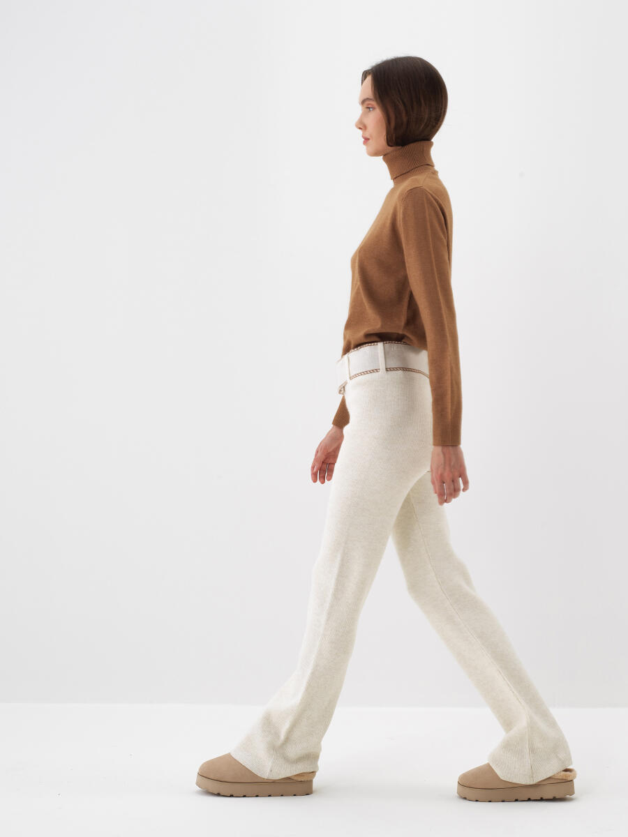 Ecru Natural Wool Textured Regular Fit Sweater - Xint