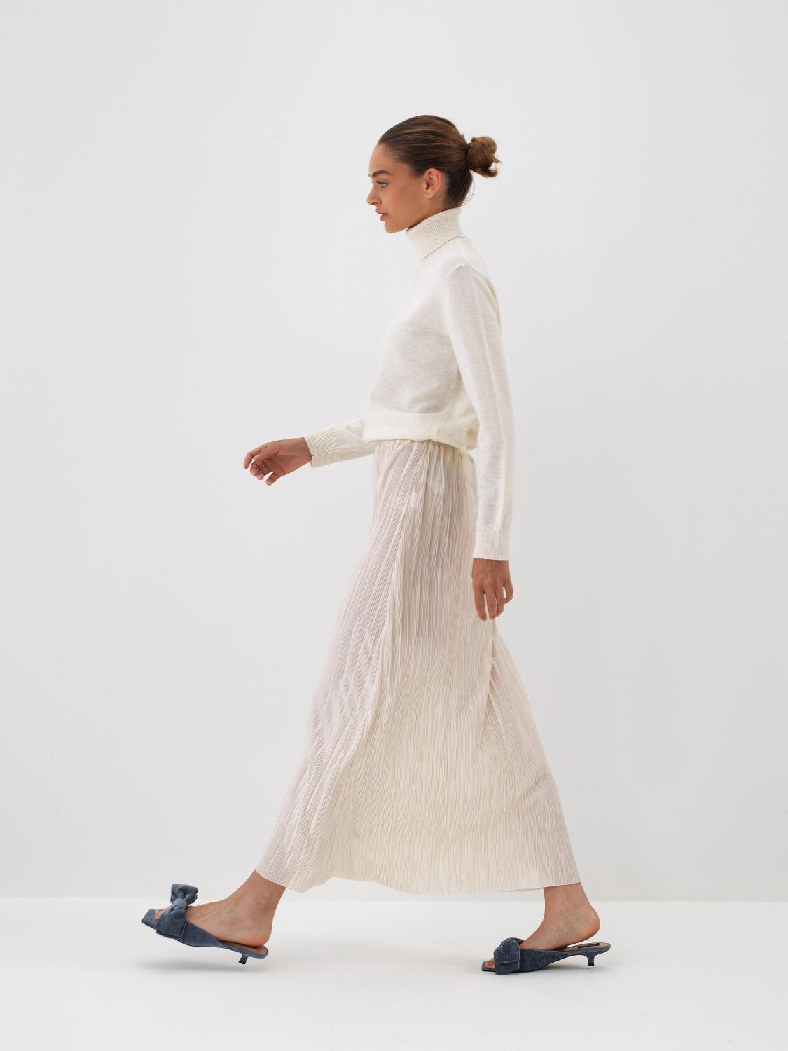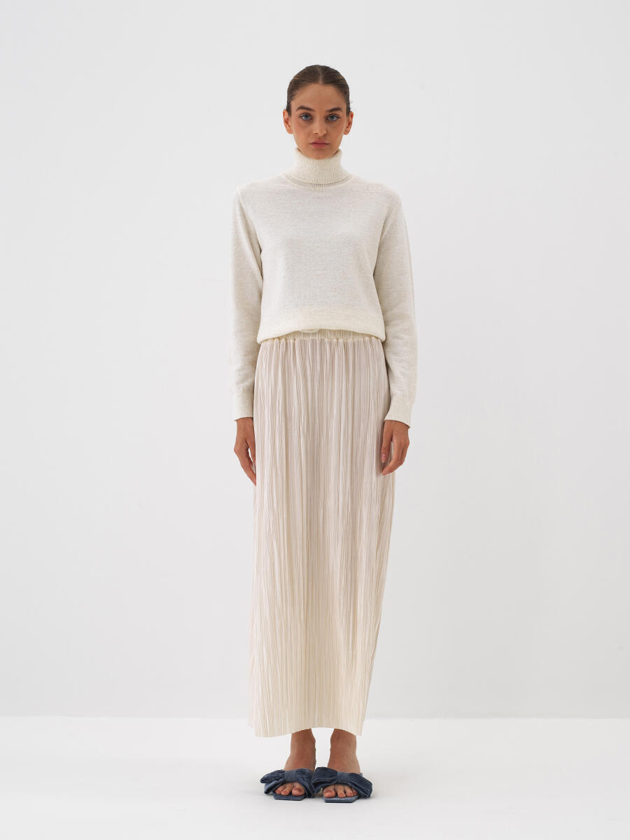Ecru Natural Wool Textured Regular Fit Sweater - Xint