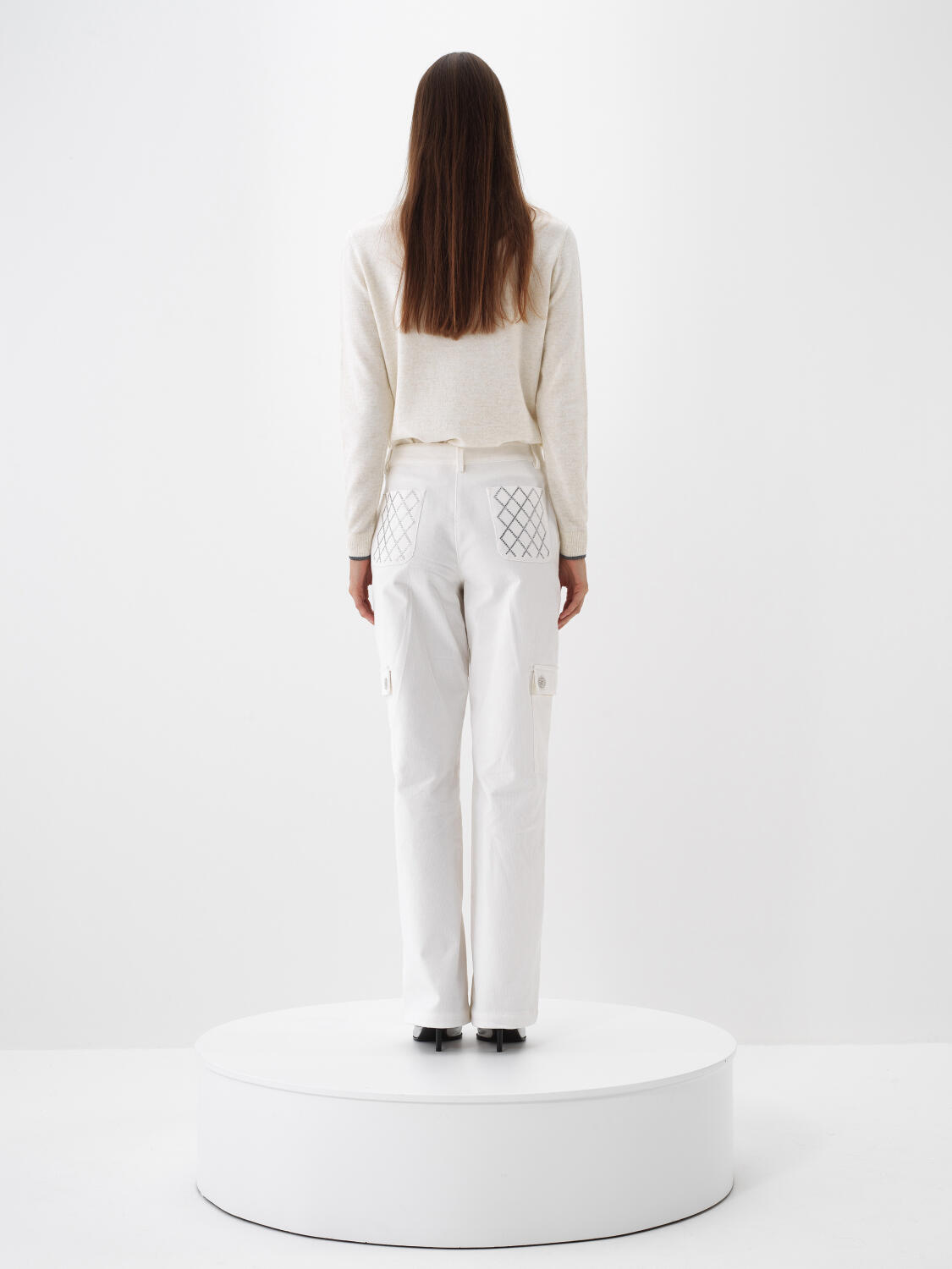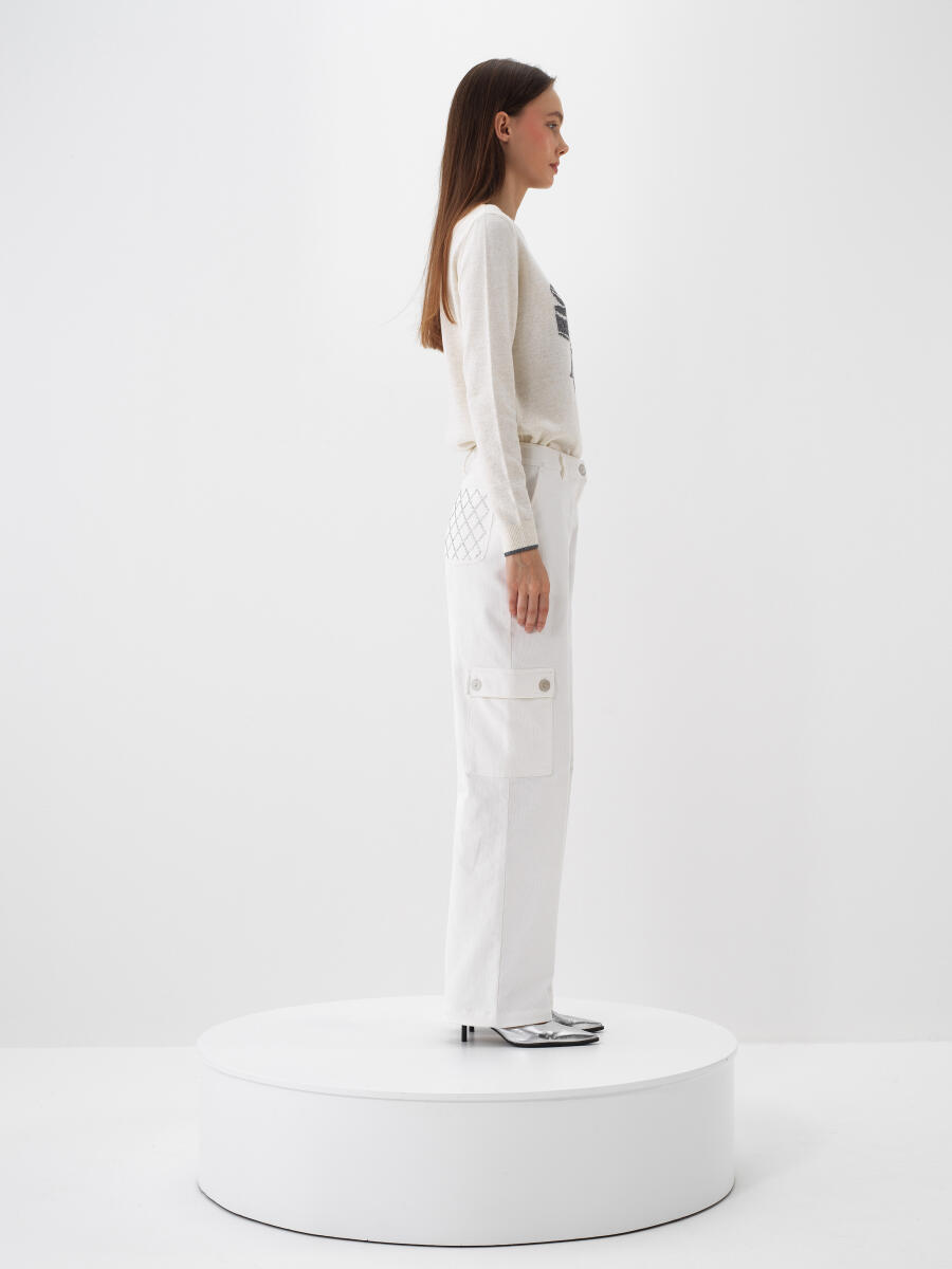 Ecru Natural Wool Textured Regular Fit Sweater - Xint