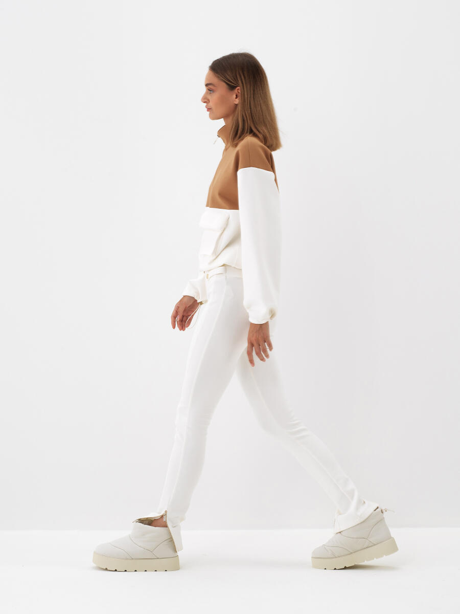 Ecru Cotton Textured Oversized Sweatshirt - Xint